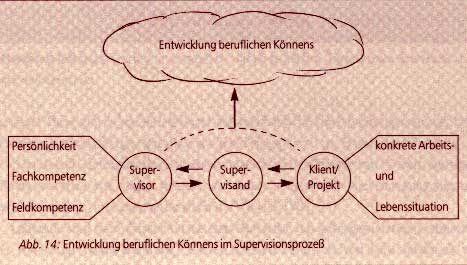 Fasse ich die oben beschriebenen Merkmale zusammen, so handelt es sich beim Supervisionsprozess um die Begegnung von personifizierter Arbeitsrealität in der Person des Supervisanden und personifizierter Fachqualifikation in der Person des Supervisors. Der Supervisor stellt sein Wissen, sein Können und seine Begegnungs- und Beziehungsfähigkeit dem Supervisanden zur Verfügung. Dabei entsteht ein wechselseitiger  Lernprozess, der es ermöglicht, immer wieder neue Modelle, Lösungsstrategien und Handlungsweisen im Umgang mit dem Klienten oder dem Projekt zu entwickeln. Dabei entwickeln beide, Supervisor und Supervisand, ihr berufliches Können zum Wohl des Klienten oder des Projektes weiter.